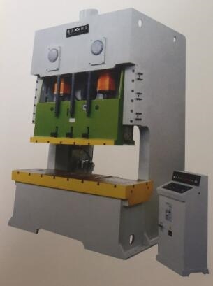 压力机是一种结构精巧的通用性压力机。具有用途广泛,生产效率高等特点,压力机可广泛应用于切断、冲孔、落料、弯曲、铆合和成形等工艺。通过对金属坯件施加强大的压力使金属发生塑性变形和断裂来加工成零件。机械压力机工作时由电动机通过三角皮带驱动大皮带轮,经过齿轮副和离合器带动曲柄滑块机构,使滑块和凸模直线下行。机械压力机在锻压工作完成后滑块程上行,离合器自动脱开,同时曲柄轴上的自动器接通,使滑块停止在上止点附近。