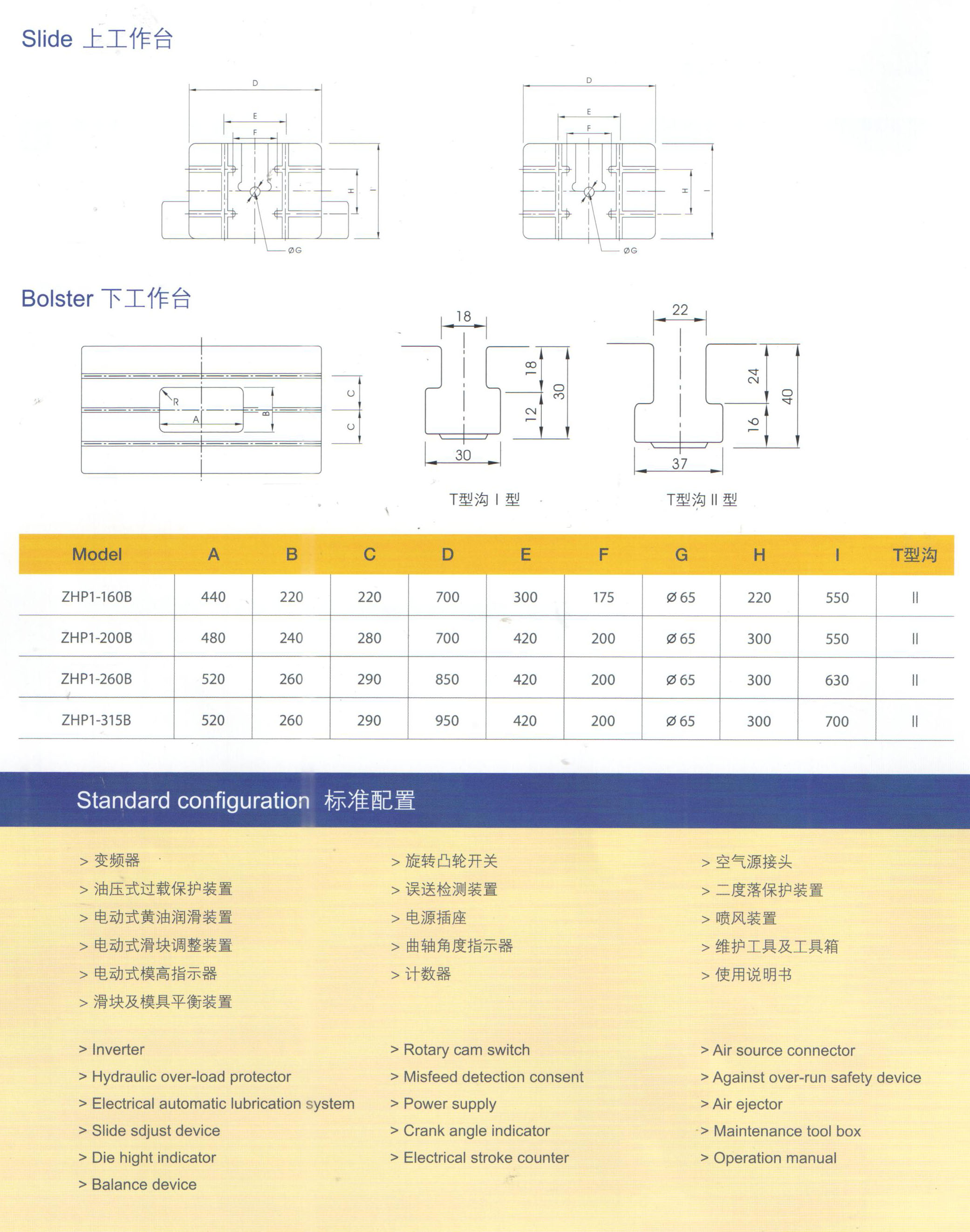 ZHP1(B型)系列高精密强力钢架气动冲床标准配置:
