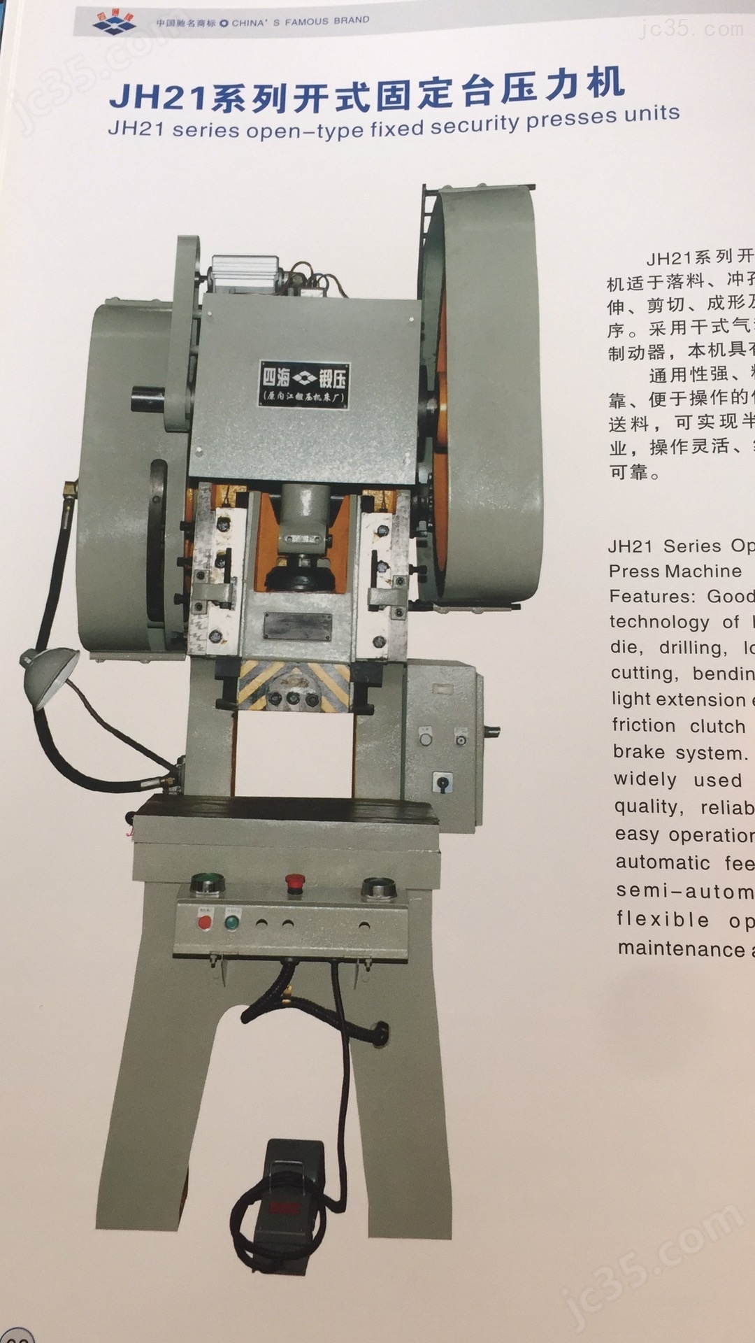 JH21系列开式固定台压力机,JH21系列开式固定台压力机,适用于落料、冲孔、弯曲、浅拉伸、剪切、成形及其他冷冲压工序。